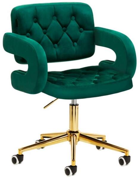 Guruló zöld bársonyszék arany vázzal: Elegancia és kényelem egyben ? Ez a stílusos és funkcionális bársonyszék tökéletes választás otthonra, irodába vagy akár szépségszalonba is. Kényelmes kialakítása és elegáns megjelenése minden helyiségnek egyedi hangulatot kölcsönöz. Főbb jellemzők: ✨ Elegáns bársony kárpitozás: Kellemes tapintású, zöld bársony, amely luxus érzetet nyújt. ⚙️ Állítható magasság: A gázpumpának köszönhetően könnyedén beállítható a kívánt magasság (43-58 cm). ? 360 fokban forgatható: A teljes forgási mechanizmus növeli a munkavégzés hatékonyságát. ? Ergonomikus kialakítás: A kényelmes karfák és a profilozott háttámla biztosítják a helyes testtartást. ? Arany színű fém váz: Elegáns és tartós, tökéletesen illik a bársonyhoz. ? Gördülő kerekek: Könnyű mozgathatóság a szobában. Méretek: A termék méretei a képen láthatók. Anyag: Kárpit: Bársony Váz: Fém (arany színű) Ez a bársonyszék nem csak gyönyörű, de rendkívül praktikus is. Tökéletes választás sminkeléshez, körömépítéshez, irodai munkához vagy egyszerűen csak pihenéshez. A felhasználók kiemelik a szék kényelmét és stílusos megjelenését, ami garantálja a hosszú távú elégedettséget.